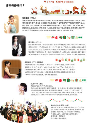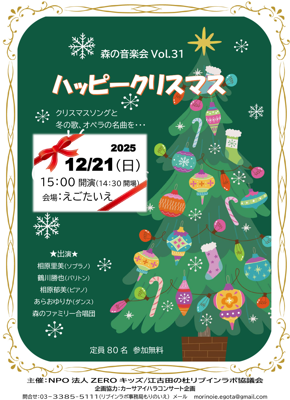 12月21日(日) 森の音楽会 Vol.31「ハッピークリスマス」のご案内(中野区・えごたいえ)