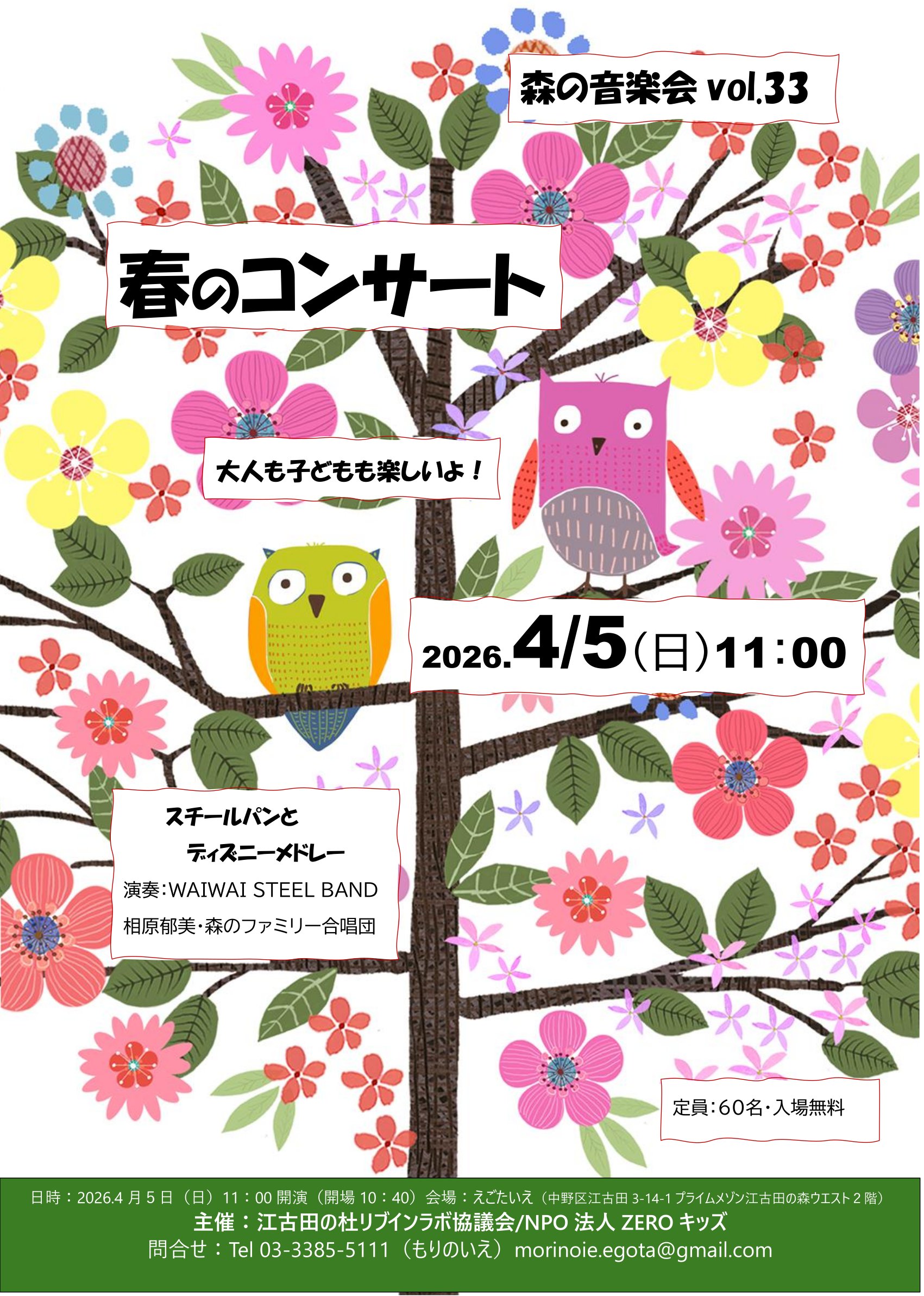 4月5日(日)森の音楽会 vol.33「春のコンサート」開催のお知らせ(中野区・えごたいえ)
